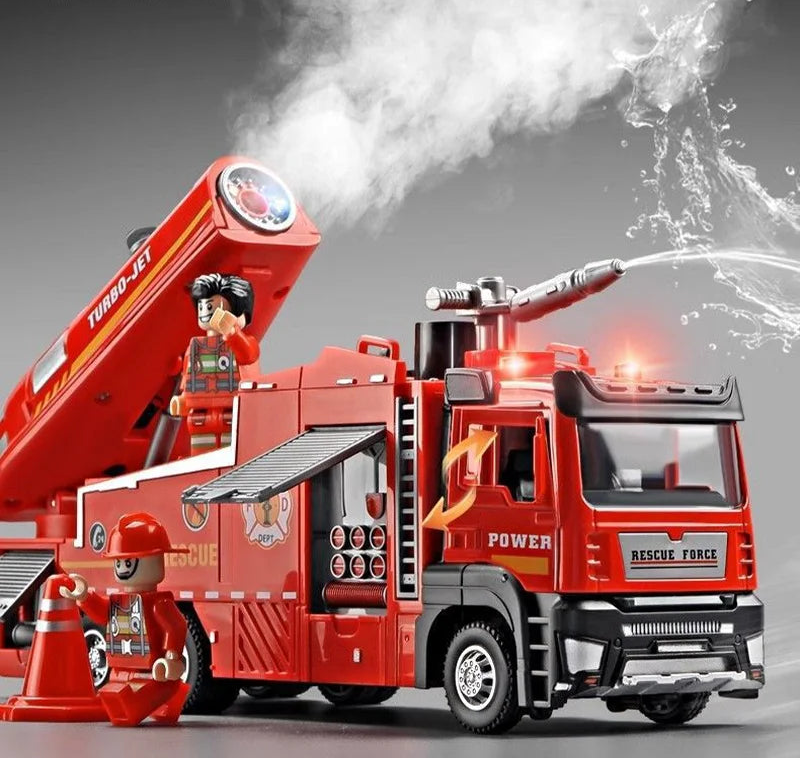 Denne leke-brannbilen med vannsprut, røyk-/mistfunksjon, lys og musikk kombinerer action, fantasi og interaktiv lek, og blir raskt en favoritt hos små brannhelter!